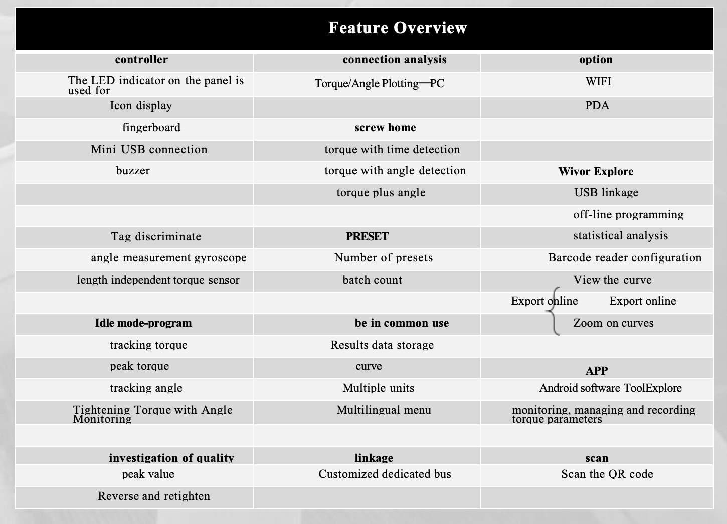 A modular manual torque tool. With modular design, you can customize various modules to perfectly match the requirements of your workstation.