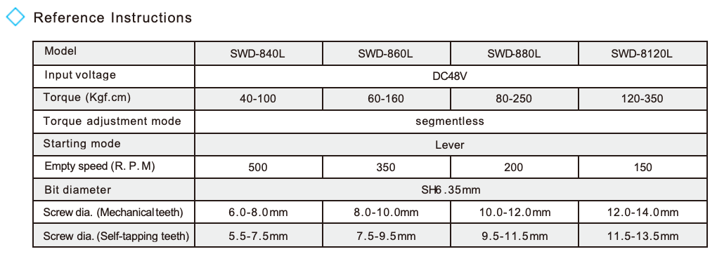 SWD Series  Brushless Electric Screwdriver